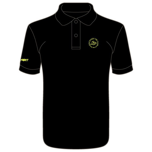 EMBROIDERED TO THE LEFT CHEST WITH DISCOVERY TRI LOGO IN LIME.